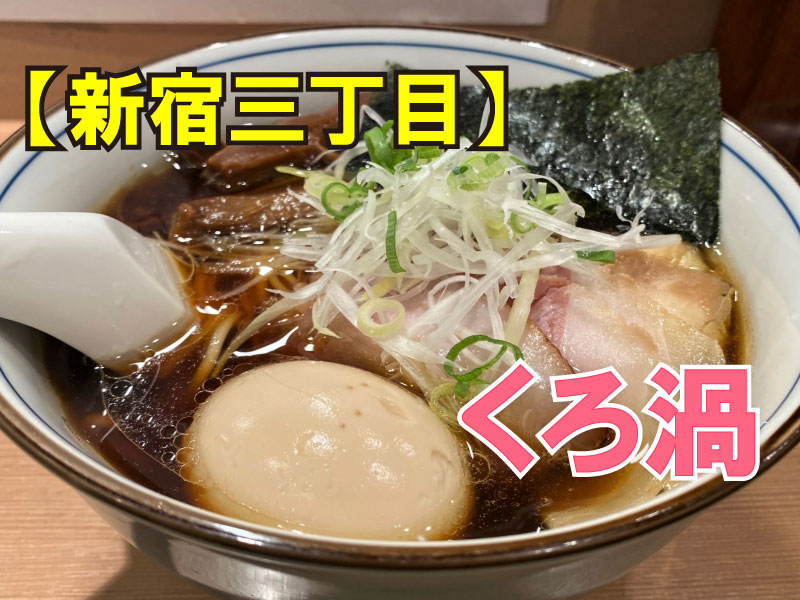 新宿三丁目駅から徒歩2分、JR新宿駅からも徒歩圏内の飲食店街の一角にある「らぁ麺くろ渦」。新宿の有名ラーメン店「はやし田」の兄弟店で、鶏ガラを使用した醤油らぁ麺や、数量限定で高級魚のどぐろのアラを使用したのどぐろそばなどを食べる事が出来るお店です。