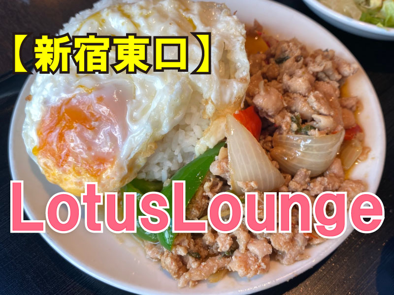 JR新宿駅や新宿三丁目駅から歩いてすぐ、マルイ本館の裏通りのビル4階にある「LotusLounge」。ガパオやグリーンカレーなどのお得なランチセットのタイ料理が17時までなので、遅いランチの時にもおすすめです。