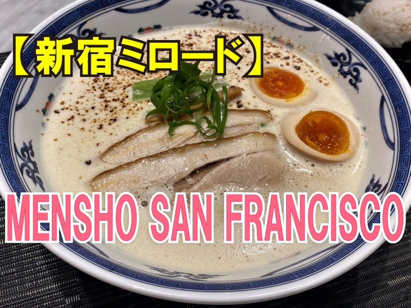 新宿ミロード7階にある「MENSHO SAN FRANCISCO(メンショーサンフランシスコ)」の事だね!!「麺や庄の」の海外進出店で、日本に普段あるラーメンとは違うメニューが揃っている注目のお店だよ。