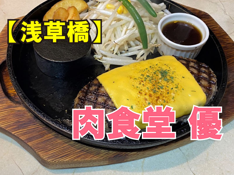 JR浅草橋駅東口から徒歩1分の線路沿いにある「肉食堂 優」は、国産牛100%のハンバーグ専門店。王様のブランチやnews everyなどのテレビでも紹介されている、肉好きにはたまらないレアハンバーグを食べることができますよ。