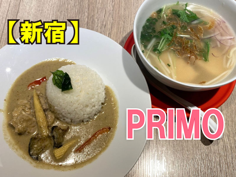 JR新宿駅東口直結の新宿ルミネエスト7階レストランフロア、2021年にオープンしたばかりの「アジアンダイニングPRIMO」。本格的なアジアン料理を日本人向けに食べやすくアレンジしてあるオシャレなエスニック料理店です。