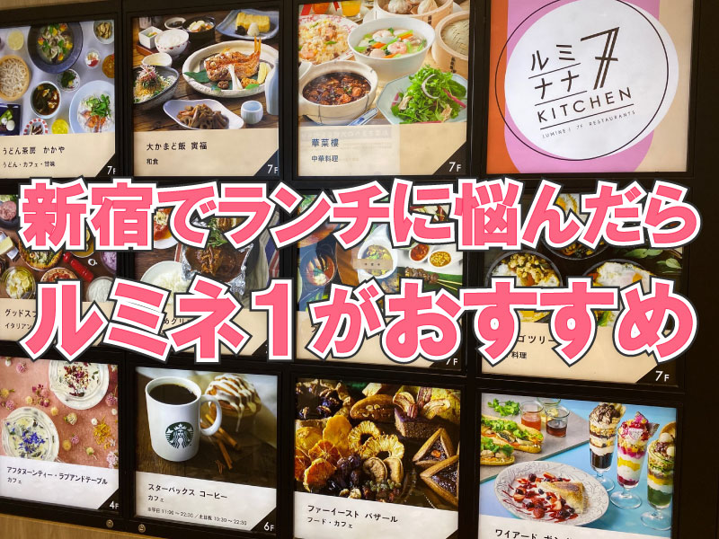 それなら新宿駅直結のルミネ1、7階レストランフロアに行ってみたらいいかも。中華や和食・洋食などバランスよくお店が揃ってるので、食事する場所に悩んだ時にはおすすめだよ。
