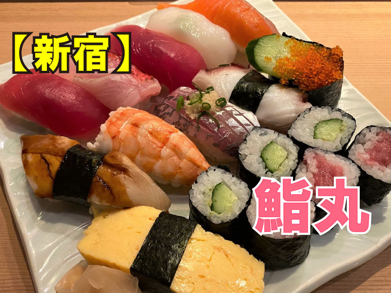 JR新宿駅や新宿三丁目駅からすぐ、ビックロや丸井本館の裏通りにある「鮨丸」は、外観は敷居が高そうな雰囲気ですが、ランチではコスパよいメニューが揃っているお寿司屋さんです。