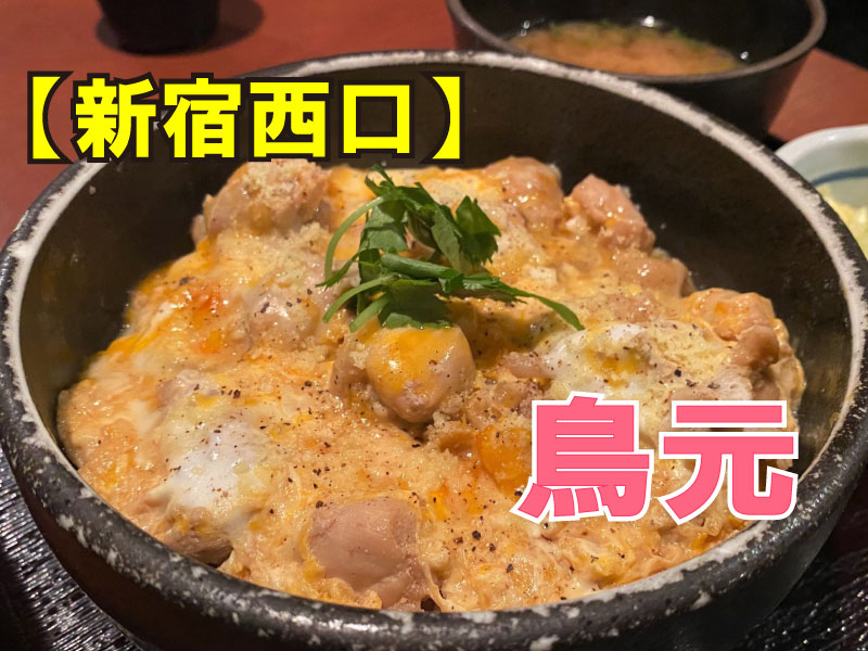 JR新宿駅西口から約3分、飲食店が立ち並ぶ一角にある大型の鶏料理専門店「鳥元」。ランチタイムでは親子丼や焼き鳥丼だけでなく、鰻重や蕎麦など様々な料理を食べる事が出来、ほとんどのランチメニューが1,000円以下で食べる事が出来るコスパ的にも気軽に行きやすいお店です。